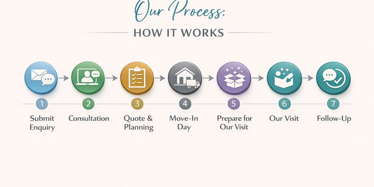 Reach out via our online form or give us a call. Tell us a little about your move, the size of your home, and the services you’re interested in. Once we receive your enquiry, we’ll be in touch to arrange your consultation.